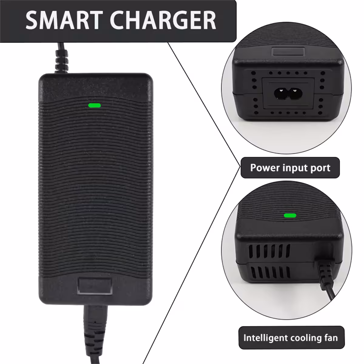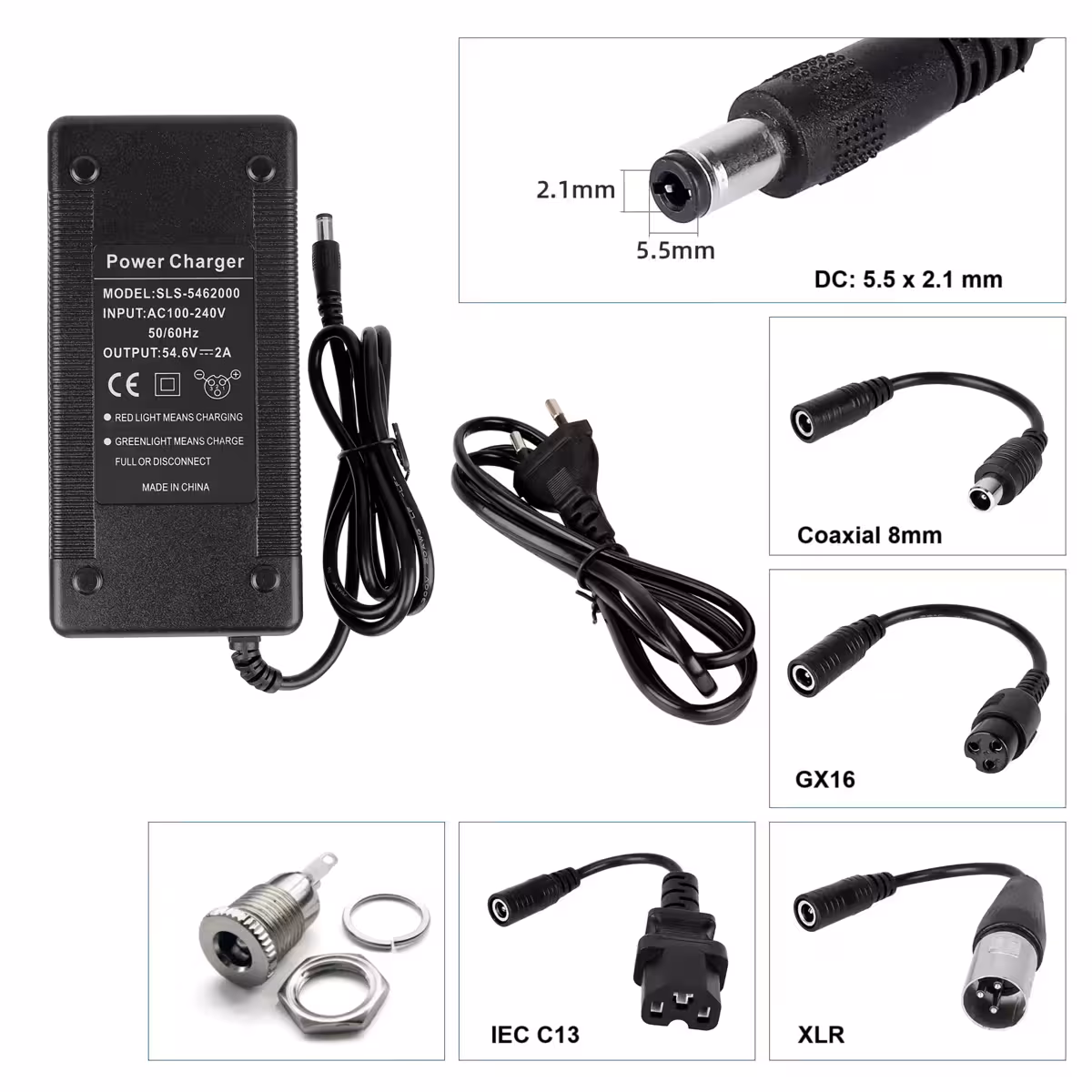 Den erbjuder en utgångsspänning på 54.6V och en konstant ström på 2A, vilket säkerställer snabb och säker laddning, med batteriskydd och förlängd livslängd.