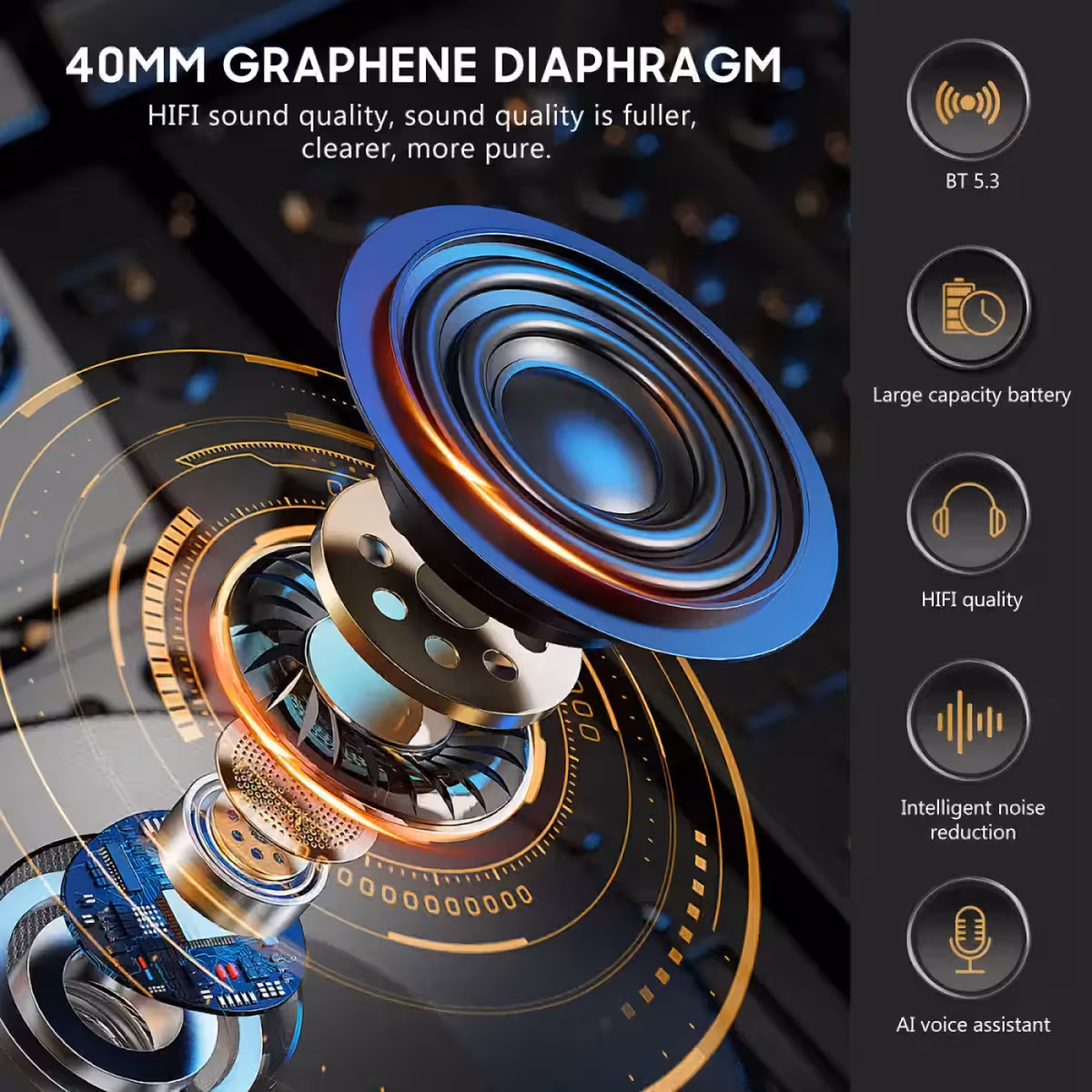 - 40mm Grafen Membran: Klar HiFi-ljud med intelligent brusreducering under samtal.