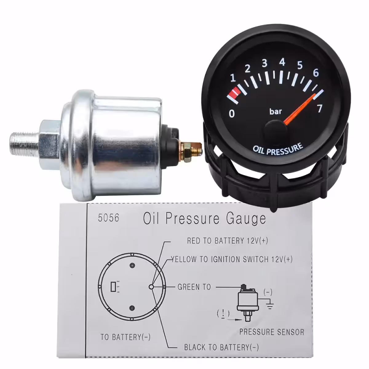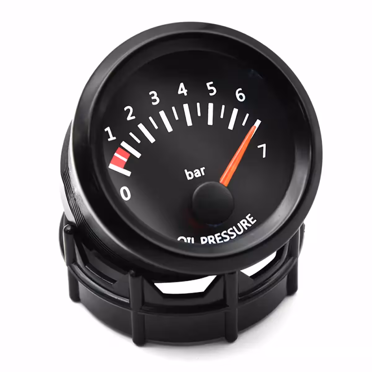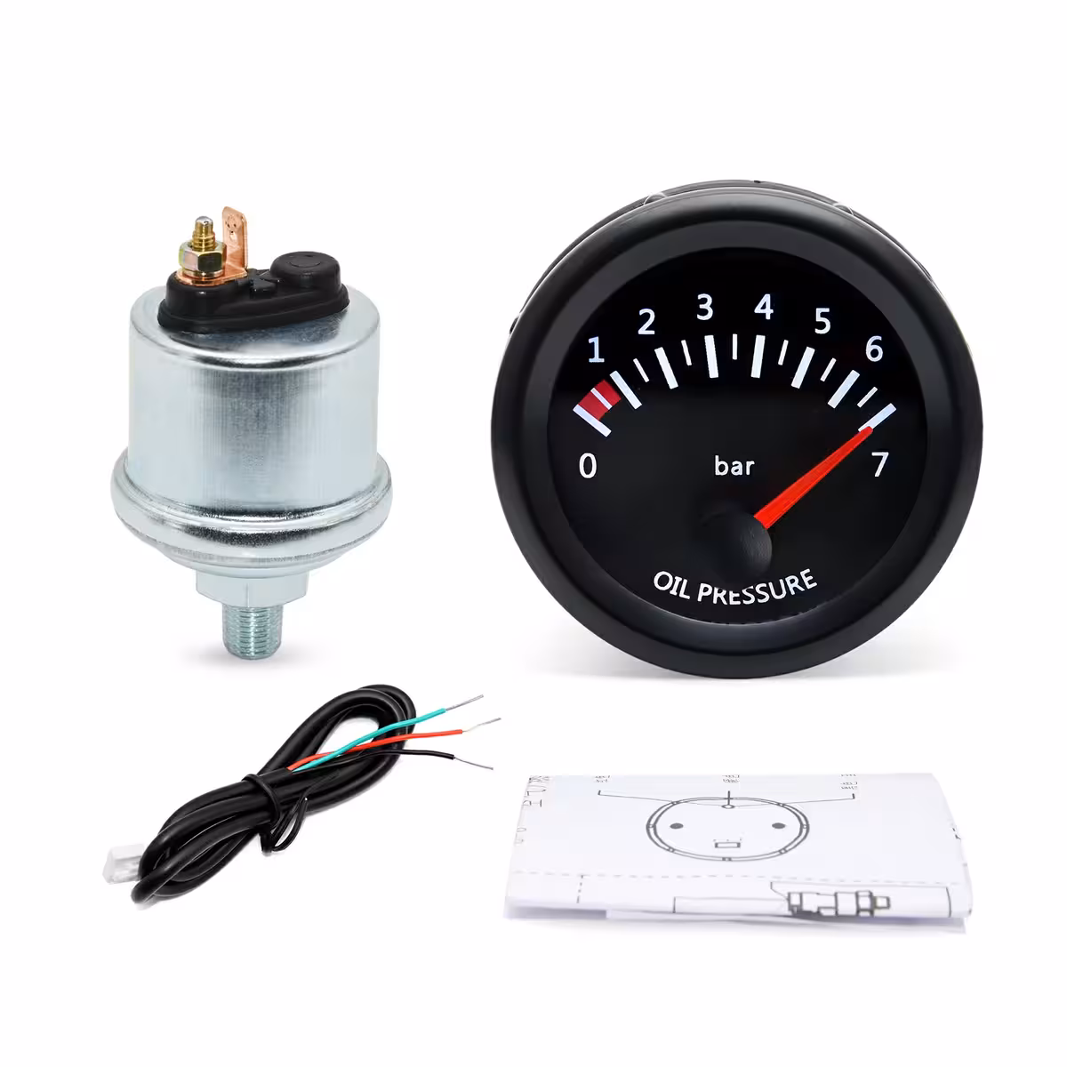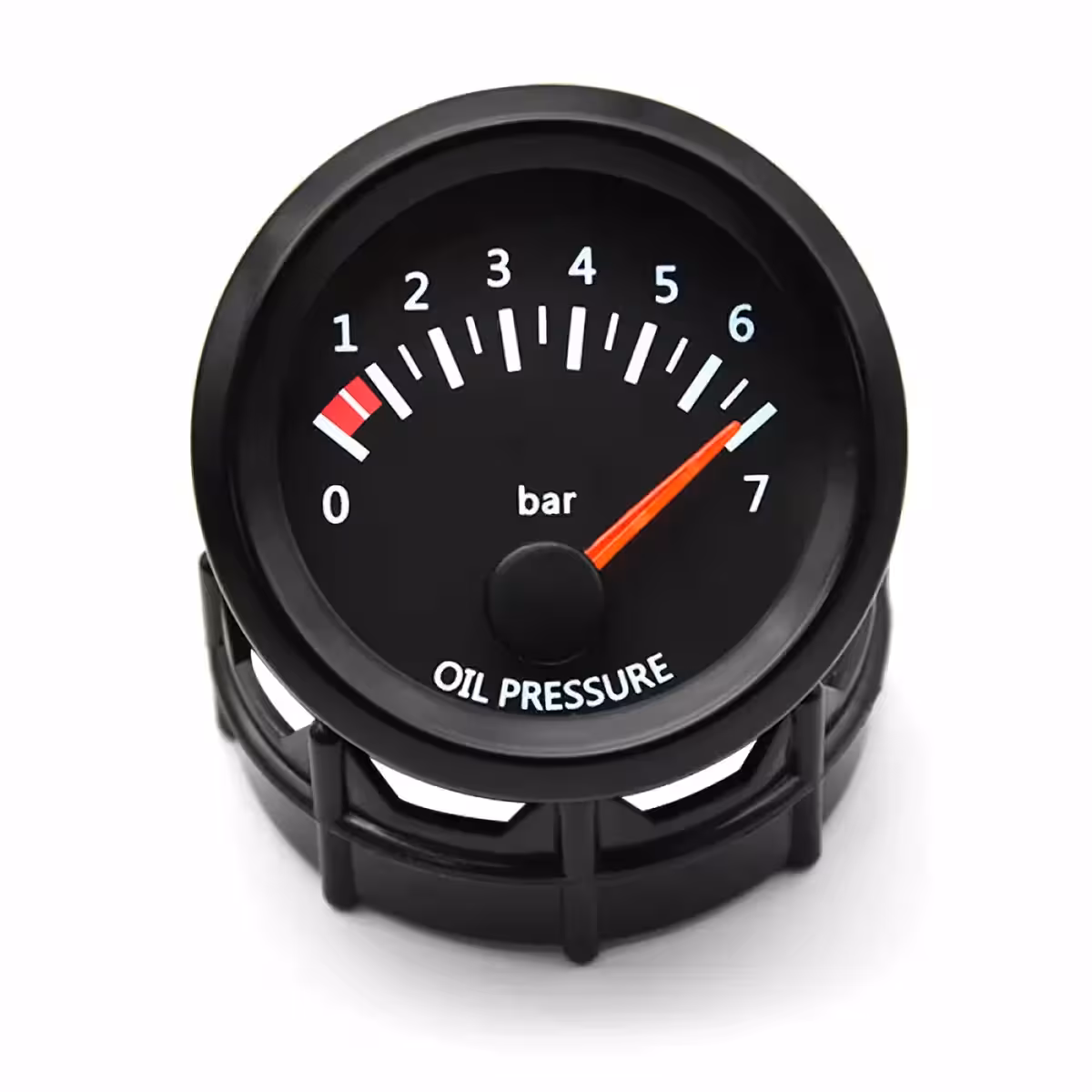Perfekt för bil-, jordbruks- eller industriapplikationer, som visar oljetrycksnivåer mellan 0 och 7 BAR med utmärkt noggrannhet.