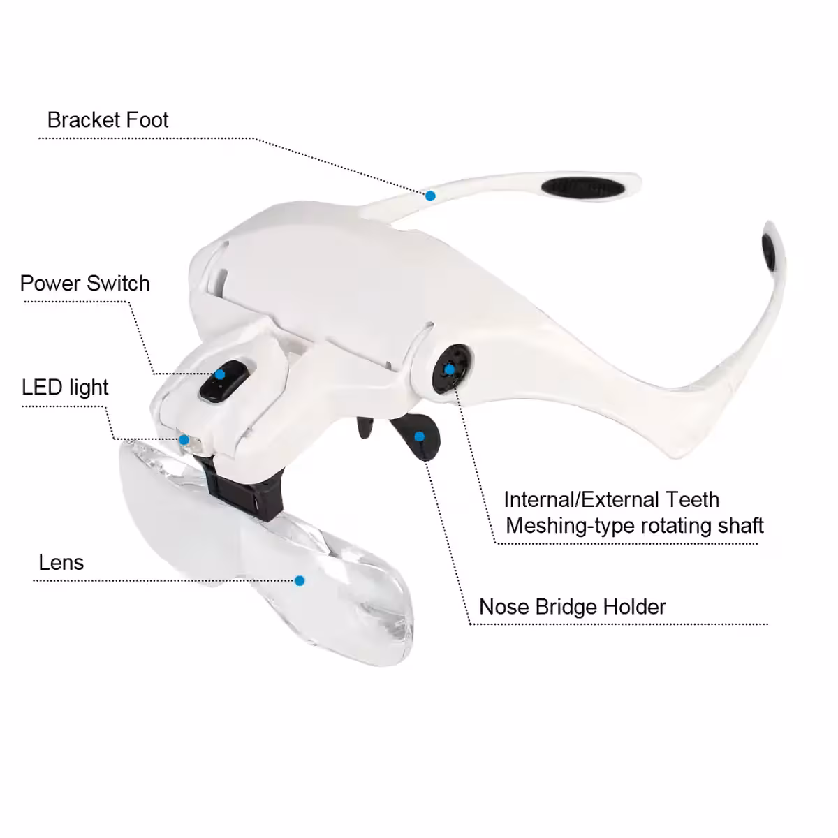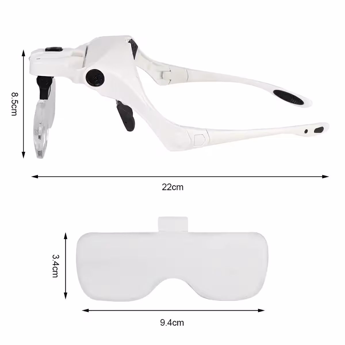 Dessa förstoringsglasögon är perfekta för klockmakare, elektroniker, juvelerare, tandläkare eller hobbyentusiaster som behöver detaljerat arbete. De har fem utbytbara linser (1.0X, 1.5X, 2.0X, 2.5X, 3.5X) och justerbar LED-belysning för tydlig syn under alla förhållanden.