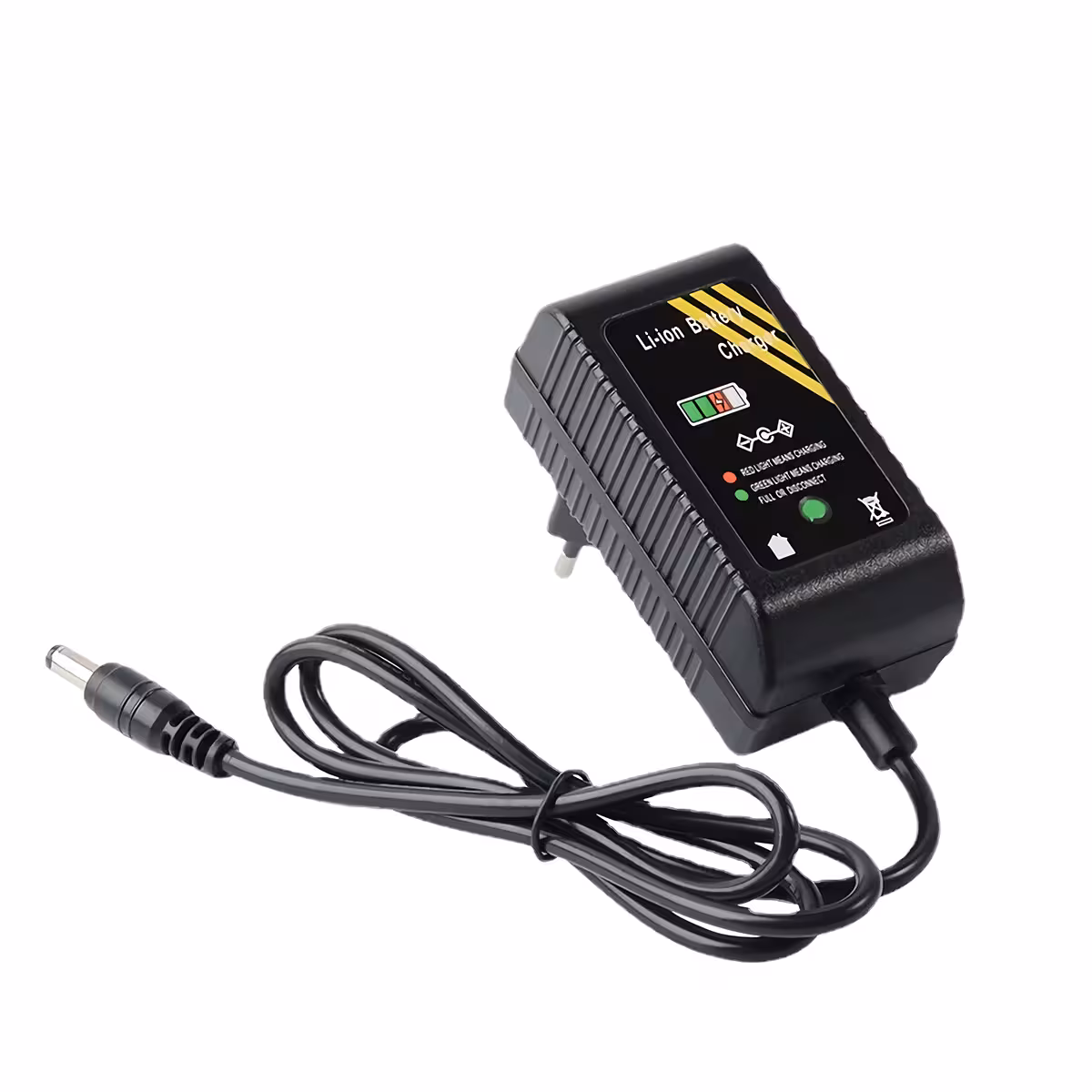 Snabbladdare för 14.4V litiumjonbatterier. 16.8V spänningen säkerställer fullständig laddning, och 2A strömstyrkan ger effektiv laddning. Perfekt för elektriska verktyg, bärbara elektroniska enheter och hobbyenheter.