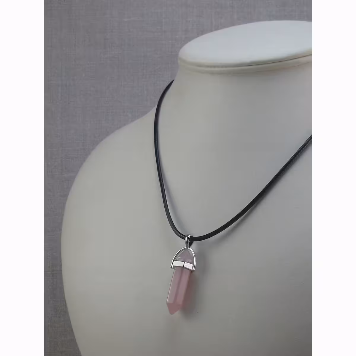 Erbjudandet inkluderar: hänge av rosenkvarts och ett elegant och hållbart läderhalsband med karbinhake.