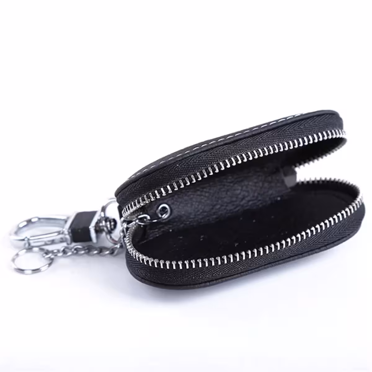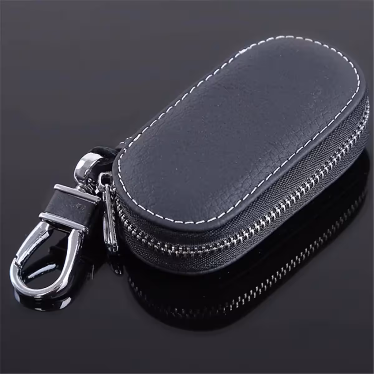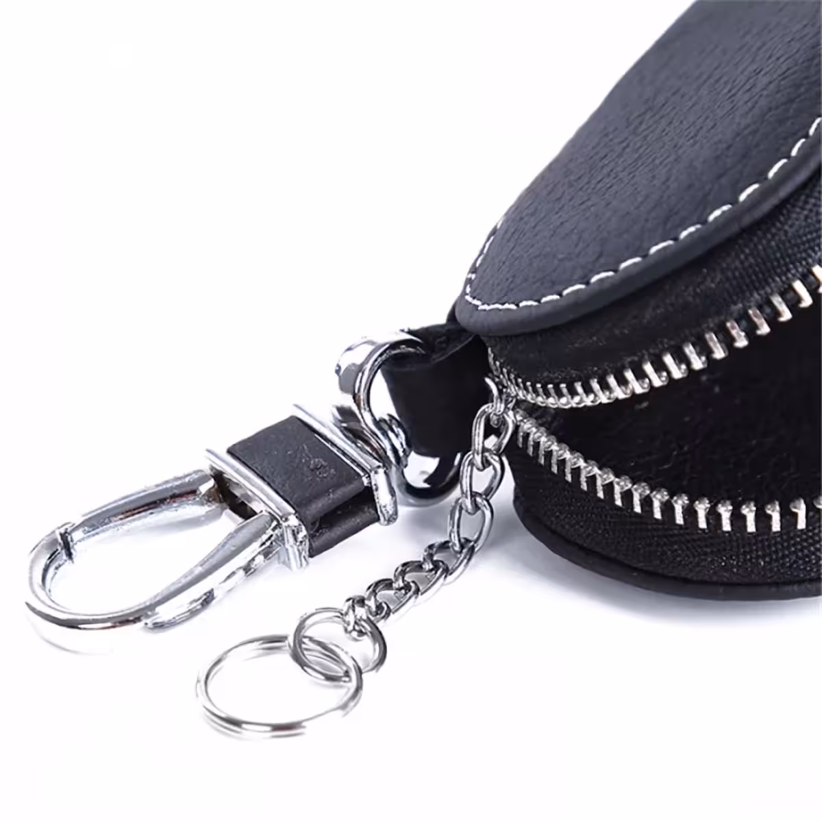 Läderplånbok för Bilnycklar – Elegant Nyckelfodral med Karbinhake och Dragkedja