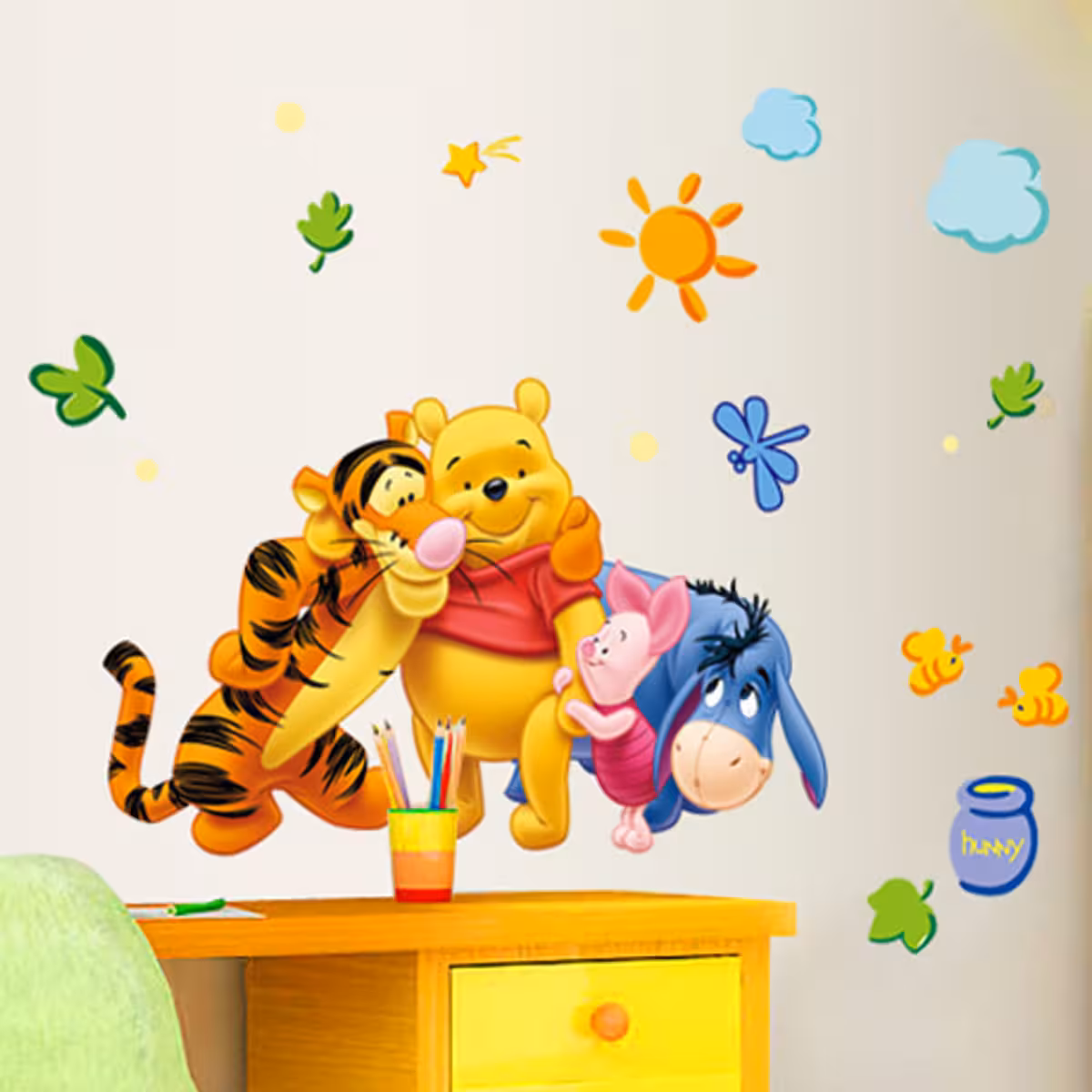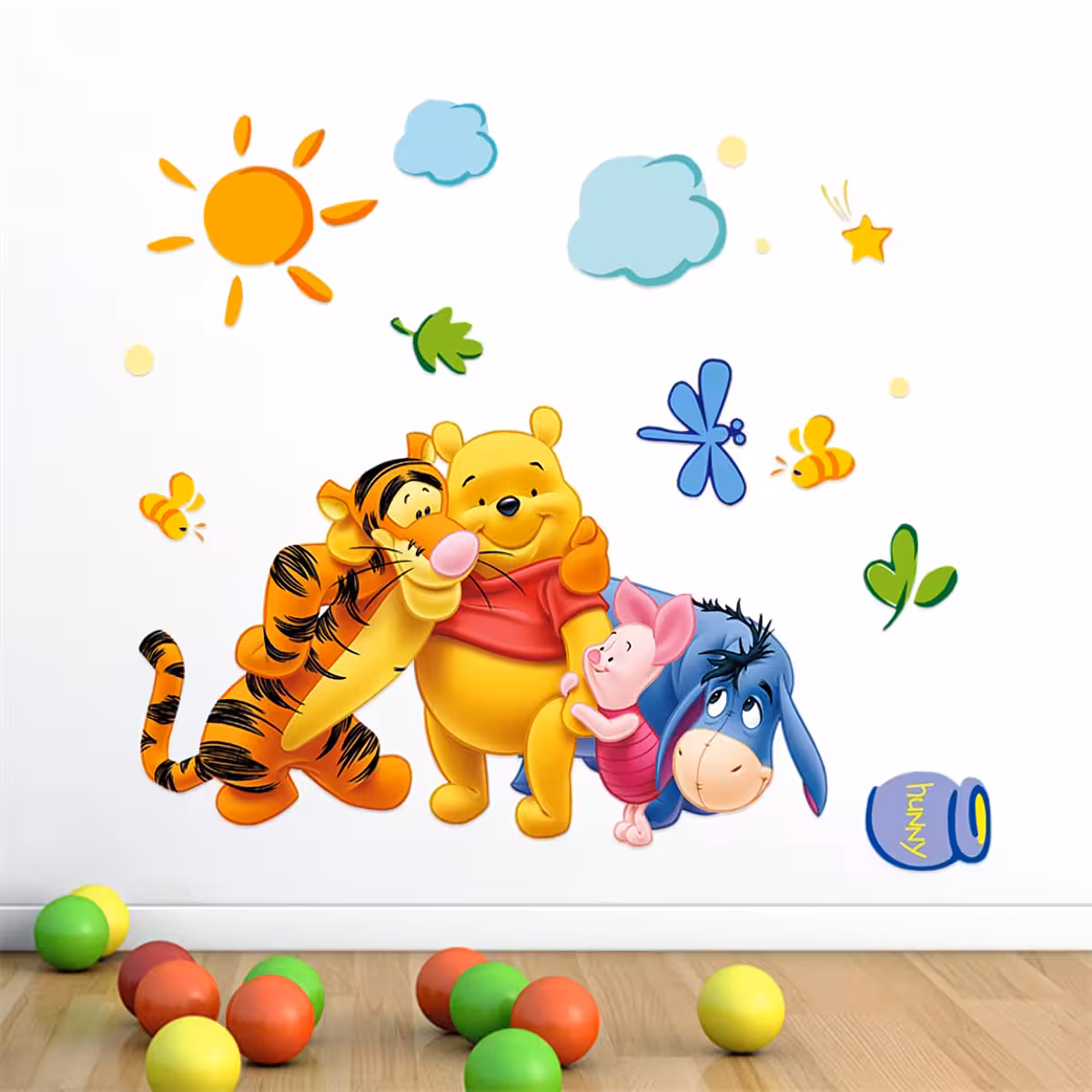 Tillsammans med sina vänner – I-or, Nasse, Tiger, Kanin, Uggla, Känga och Roo – bor Pooh i den legendariska Hundra tunnlands skogen. Våra dekaler illustrerar dessa älskade tecknade karaktärer på ett levande och uttrycksfullt sätt.