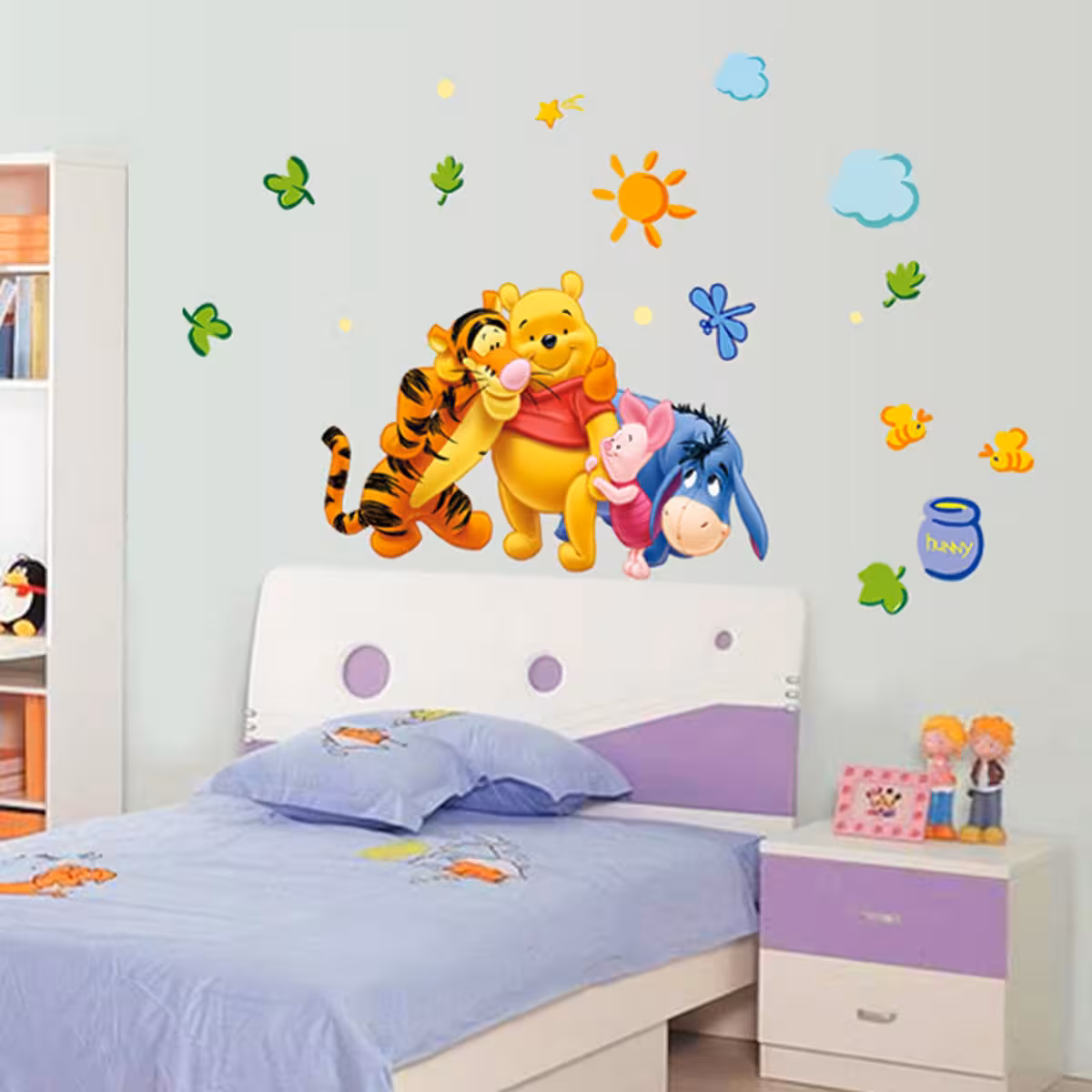 Winnie the Pooh-väggdekaler, perfekta som självhäftande dekorationsstickers för att dekorera och inreda barnrum, förskolor och lekytor.